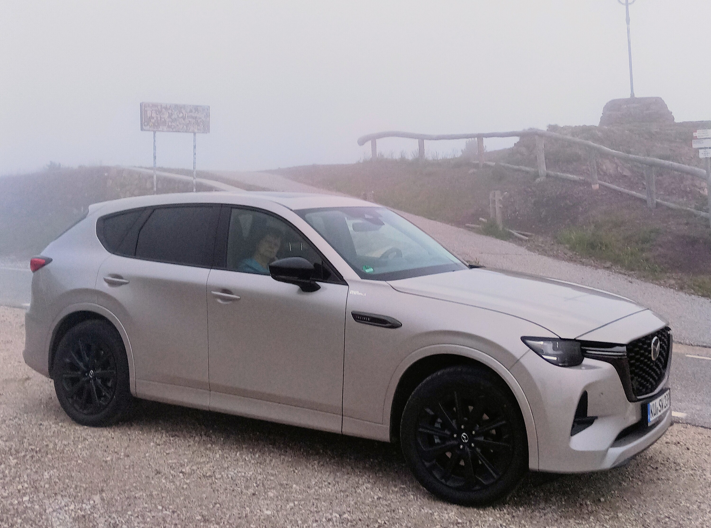 Nordseitig sogar mit ein paar heftigen und schmalen Kehren .... Passo Manghen mit CX-60 auch im Nebel, einfach schön.